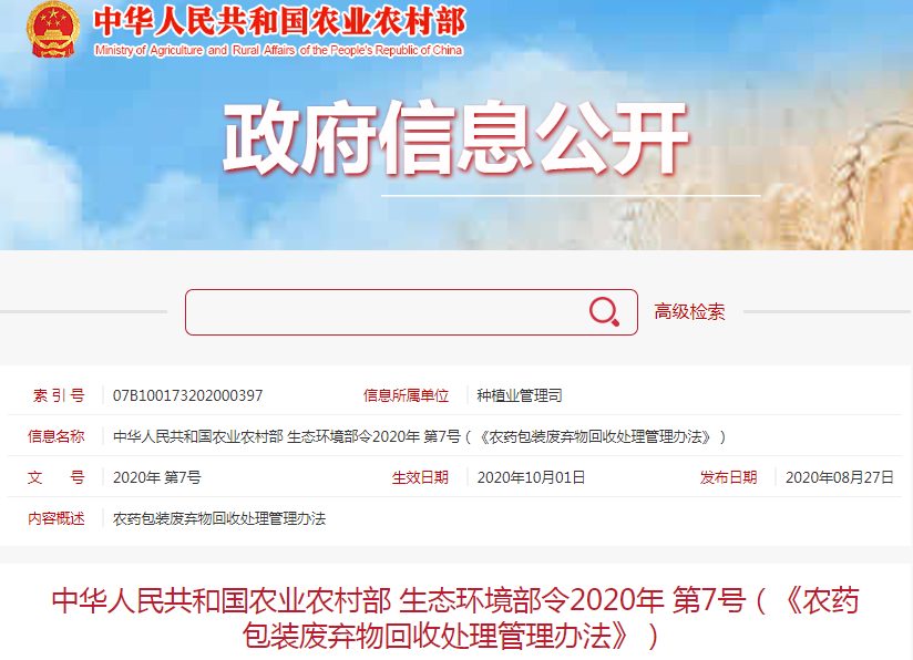 第八條縣級(jí)以上地方人民政府農(nóng)業(yè)農(nóng)村和生態(tài)環(huán)境主管部門應(yīng)當(dāng)采取多種形式,開展農(nóng)藥包裝廢棄物回收處理的宣傳和教育,指導(dǎo)農(nóng)藥生產(chǎn)者、經(jīng)營者和專業(yè)化服務(wù)機(jī)構(gòu)開展農(nóng)藥包裝廢棄物的回收處理。