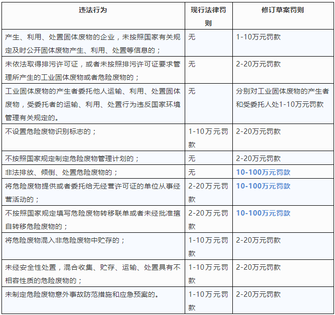 修訂草案涉及罰款的主要變更點(diǎn)